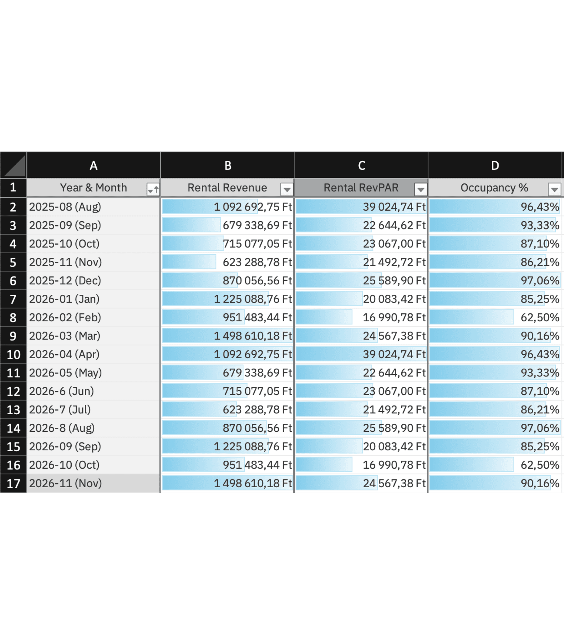 Minden hónapban tételes riportot küldünk a foglalásokról, a takarítási díjakról és a kifizetett profitról. Nálunk az elszámolás pontos és követhető.